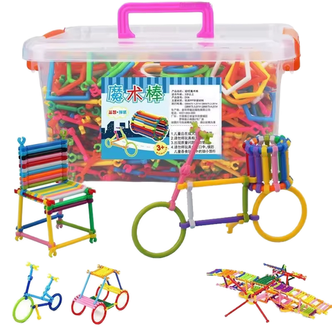Directo de fábrica, venta al por mayor, 500 Uds., palos inteligentes en caja, bloques de construcción surtidos para niños, juguetes STEM, bloques de construcción educativos